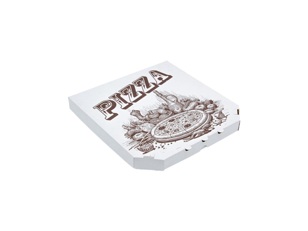 Krabica na pizzu 320x320x30mm papier kraft/biela s potlačou (100ks)